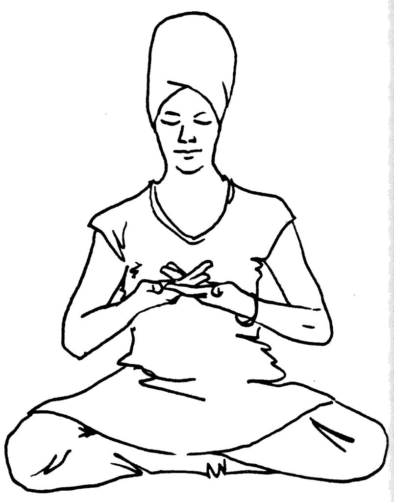 Поза: сядьте в Простую позу со скрещенными ногами. Переплетите пальцы в перевернутый замок Венеры. Поместите мудру на уровне солнечного сплетения. Ладони и пальцы смотрят вверх, а большие пальцы направлены вперед.