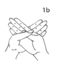 Мудра: Расслабьте руки по бокам от тела. Согните локти и поднимите руки на уровень груди. Разверните ладони к груди и положите одну ладонь на другую крест накрест. Большие пальцы также перекрещиваются, остальные направлены вверх под комфортным углом. (Не имеет значение какая рука сверху).