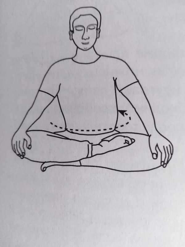 Поза: Сядьте в Простую позу или на стул, удерживая спину прямой. Совершайте круговые движения туловища в области талии. Сначала в одну сторону, потом в другую. Руки обхватывают колени и помогают туловищу во время движения.