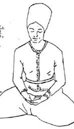 Сядьте в любой удобной позе, спина прямая. Руки положите в паху ладонями вверх, правая рука лежит на левой. Большие пальцы соединены и направлены вперёд.