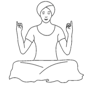 Поднимите руки так, чтобы мизинцы указывали вверх, а остальные пальцы были опущены вниз и придерживались большими пальцами. Ладони смотрят вперёд, локти расслаблены. Глаза закрыты.