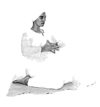 Поза: Снова сядьте либо на пятки, либо в Позу Воздержания, широко расставив колени.