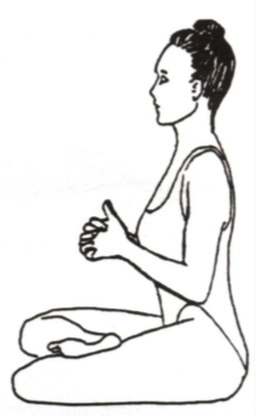 Мудра: переплетите пальцы в замок, чтобы указательный палец правой руки был сверху, а большие пальцы прижмите друг к другу и вытяните вверх. Удерживайте руки перед собой между солнечным сплетением и сердцем.