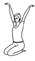 Руки: Поднимите руки вверх под углом 60°. Ладони раскрыты и направлены вверх.