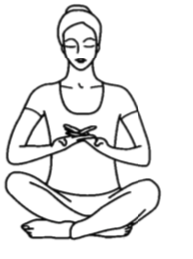 Мудра: Выполните обратный замок Венеры, при котором пальцы переплетены в сторону, обратную от обычной. Держите руки на уровне солнечного сплетения, ладони и кончики пальцев при этом направлены вверх. Удерживайте большие пальцы ровно и направьте их в сторону от тела.