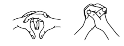 Мудра (соприкосновение двух пальцев Солнца) создаёт поток жизненной энергии, протекающий прямо под потоком общей энергии (другие переплетённые пальцы).