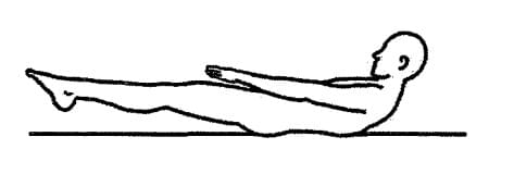1. Поза Натяжения. Поднимите голову, плечи на 15 см от пола, затем руки и тяните их вперед; и только потом приподнимите ноги также на 15 см и тяните носочки от себя. Начните дыхание Огня. Живот должен двигаться. Удерживайте позу за счет поясничных мышц.