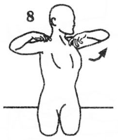 9. Не меняя положения кистей, со вдохом поднимайте локти вверх, с выдохом опускайте их вниз до уровня плеч. В верхнем положении тыльные стороны запястий должны касаться друг друга.
