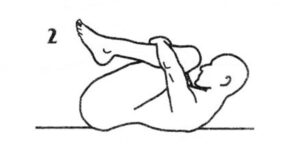 2. Оставаясь лежать на спине, притяните оба колена к груди, обхватив их руками. Поместите нос между колен. Продолжайте дышать дыханием Огня.