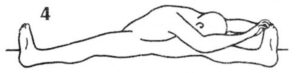 5. Растяжение жизненного нерва. Оставаясь сидеть с широко разведенными ногами, захватите обеими руками большие пальцы ног. С выдохом наклоняйтесь вперед, стараясь коснуться лбом пола. Со вдохом возвращайтесь в вертикальное положение.