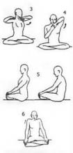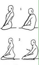5. Прогибы верхнего отдела позвоночника. Сядь в простую позу, крепко возьми себя за колени: руки в локтях прямые. Потяни макушку головы вверх вытяни спину. Не сгибая локтей начни со вдохом прогибаться вперед, направляя грудную клетку вверх и вперед; с выдохом — назад. Следите за тем, чтобы работал только верхний отдел позвоночника. Повтори 108 раз. Отдых: 1 минута