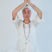 Мудра: Сидя в простой позе с прямой спиной, вытяните макушку на верх и представьте себя самым настоящим йогом. Согните руки в локтях по бокам от туловища. Поместите ладони напротив Сердечного Центра, ладони смотрят друг на друга, пальцы направлены вверх к потолку. Разведите пальцы широко в стороны.