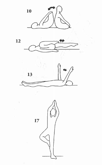 18. Массаж. При помощи обоих рук энергично и сильно массируйте лицо, кожу головы и уши. Выполняйте 1 минуту 30 секунд. Массируйте грудь, плечи и подмышки в течение 30 секунд.Массируйте руки, запястья и кисти рук в течение 30 секунд. Изгибайте позвоночник в течение 30 секунд. Вытяните руки на 10 секунд. Расслабьтесь.