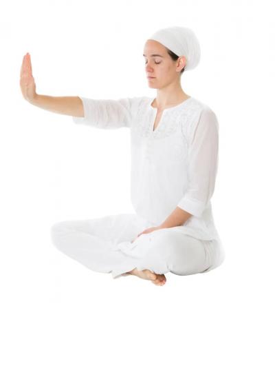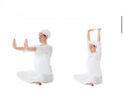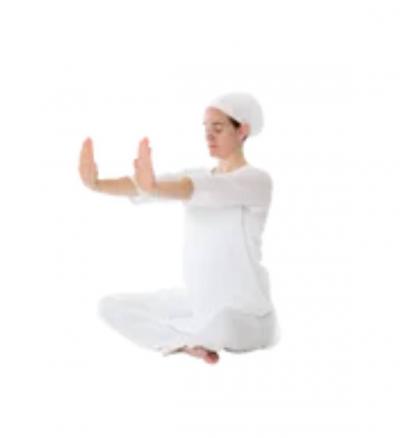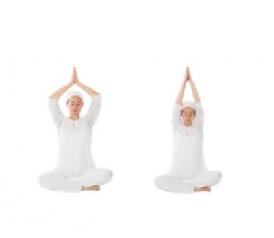 Теперь поднимите прямые руки над головой, соприкасаясь ладонями, не издавая звука хлопка.