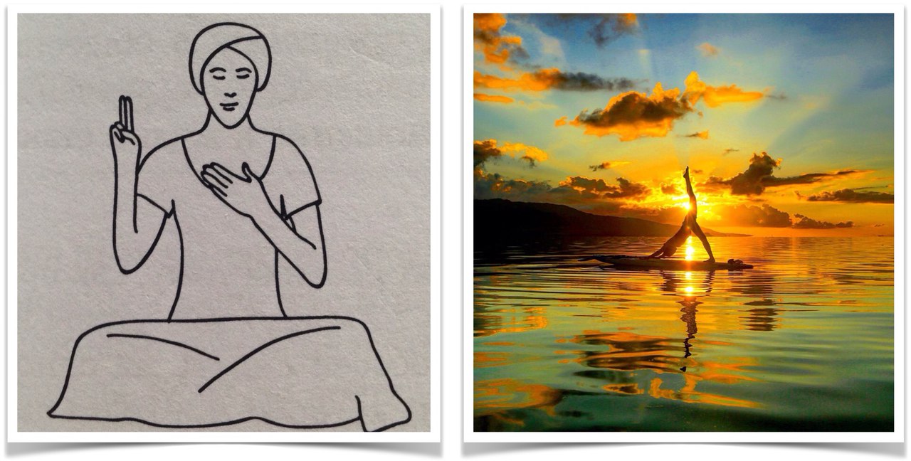 Сядьте со скрещенными ногами и прямой спиной. Положите левую ладонь на Сердечный Центр. Правую руку поднимите до уровня подбородка, указательный и средний пальцы выпрямлены, остальные прижаты большим пальцем, ладонь развёрнута вперед. Локти расслаблены.