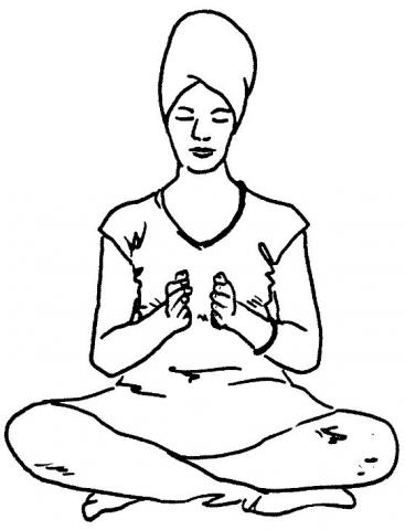 Завершите упражнение и расслабьтесь в простой позе,руки в Гьян Мудре.