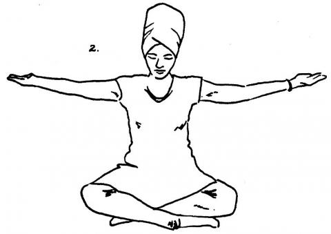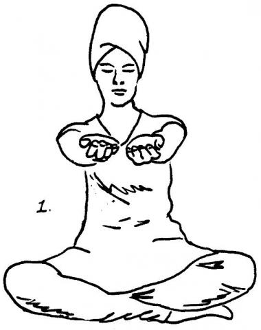 1.Сядьте в простую позу с прямым позвоночником, вытянув руки перед собой параллельно полу ладонями вверх.