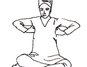 Сядьте в простую позу с прямым позвоночником. Подушечки пальцев соединены вместе. Затем поместите пальцы в область подмышек. Это заставит позвоночник стать очень прямым. Сделайте горловой замок.
