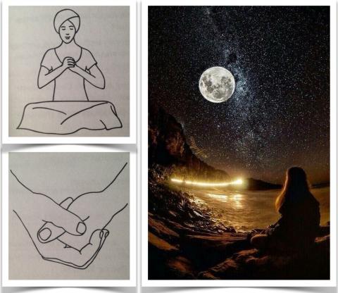 Сядьте со скрещенными ногами и прямой спиной. Сожмите Левую руку в кулак, обхватите его правой рукой, держите мудру на а уровне Сердечного Центра. Большие пальцы перекрещены.